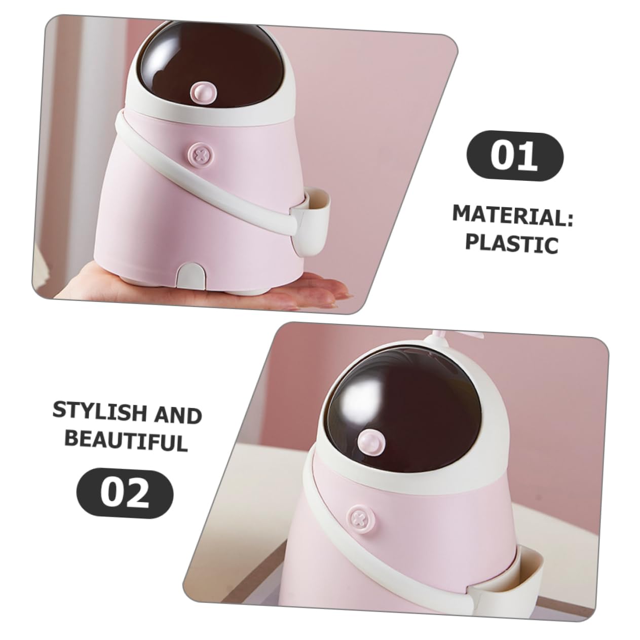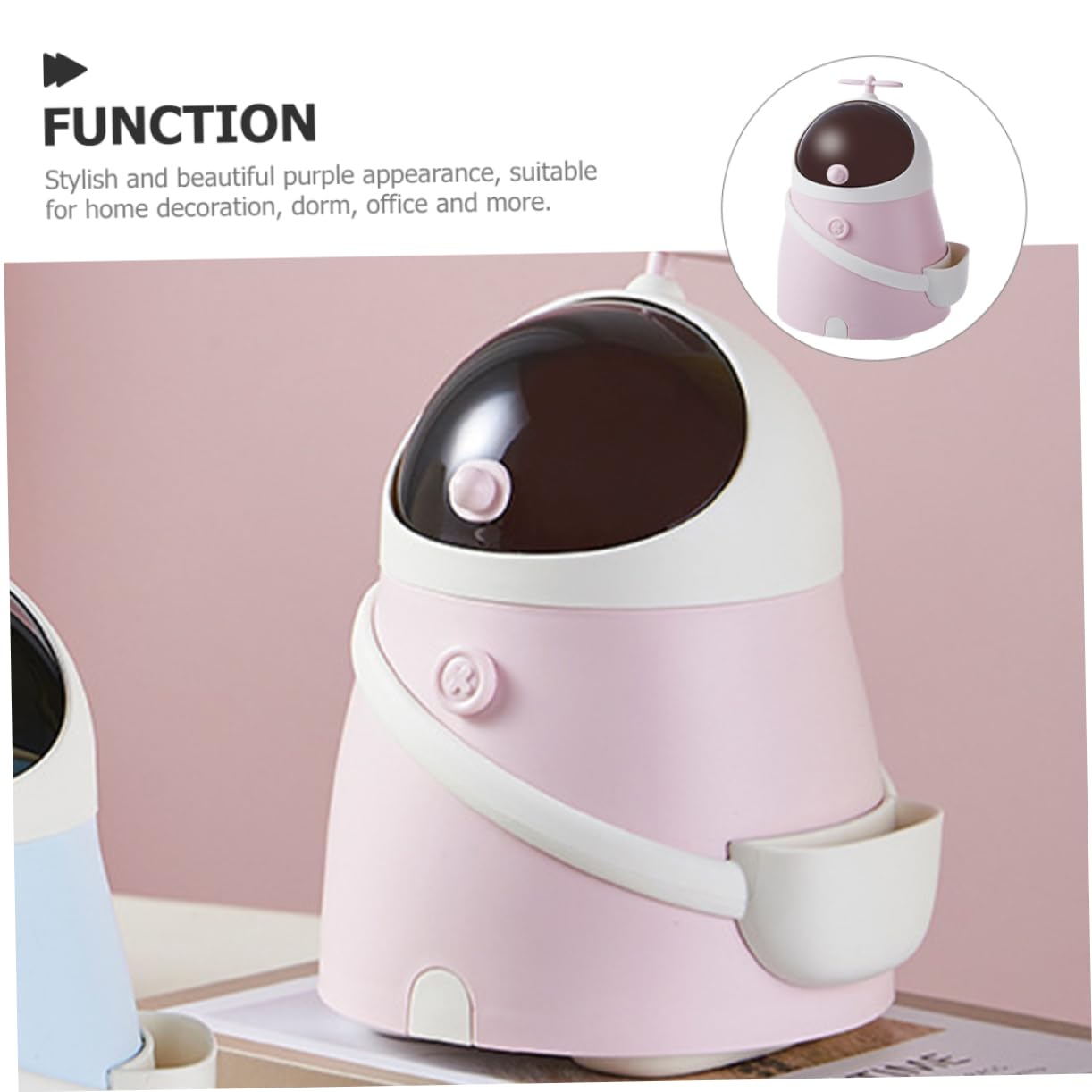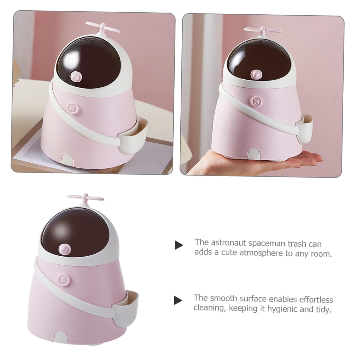 🚀 Unique Spaceman Design: Featuring a lovely astronaut shape with a cute top propeller, it instantly adds a fun, relaxing, and charming atmosphere to any room. It’s not just a mini bin; it’s a stylish desk accessory!